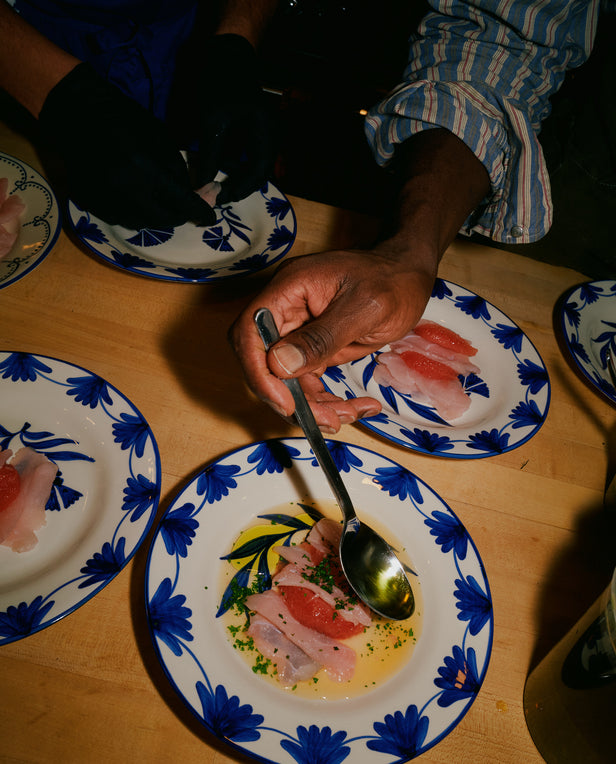 Last week, we gathered with Courtney Grow for an intimate dinner cooked by chef and artist DeVonn Charles Francis. DeVonn is known for the way he blurs lines — between art and cooking, tradition and reinvention, intimacy and spectacle. His food is rooted in culture and memory, but also in the act of creating space: space for joy, for storytelling, for connection.