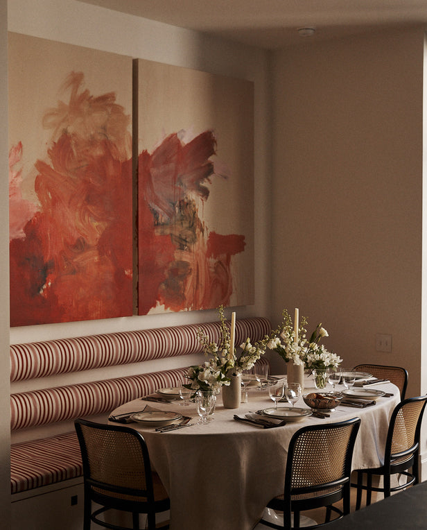 Laying the holiday table is its own kind of dance. One piece after another until—hey presto—the scene is set. Plates, candles, ribbons, crackers. Each time, a variation on a theme, never quite the same twice. The stage for celebration, ready to be played out. Treat it with intention and a touch of mischief, and those gathered around will bring it to life.